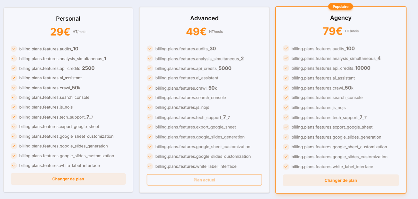Sur la page pour changer d'abonnement, la traduction n'éxiste pas et ça fait bizarre
