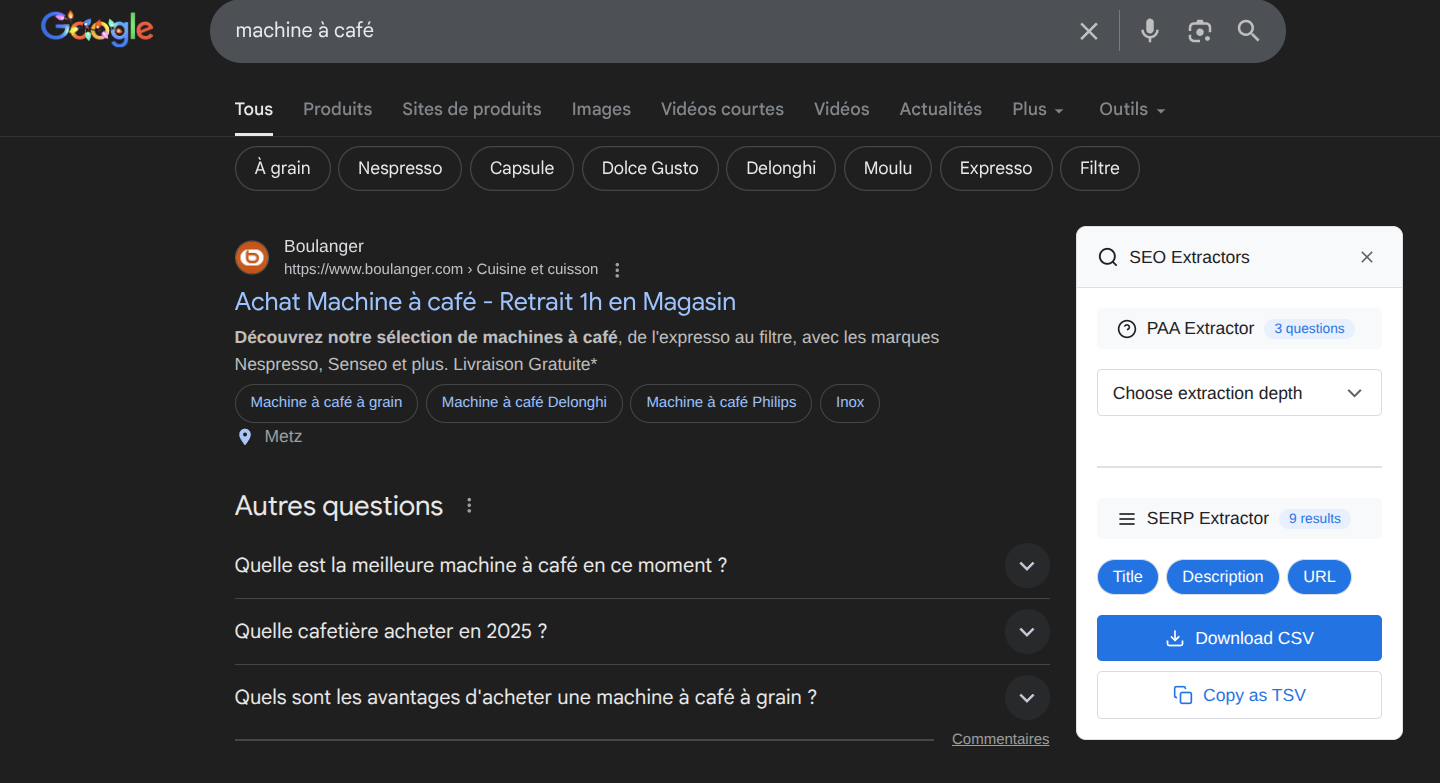 Quand Google est en theme noir, l'extracteur de serp fait tâche en couleur blanche.